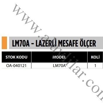 Lm70a lazerli mesafe ölçer iç ve dış mekanlarda hızlı mesafe ölçümü yapmak için kullanılan dijital bir cihazdır lazer ışığı ile hedef noktaya yönelir ve ölçüm sonucunu anlık olarak dijital ekranda gösterir ölçüm aralığı geniş mesafeleri kolayca belirlemeye uygundur çözünürlük hassas ölçüm sağlar gövde elde taşımaya uygun dayanıklı yapıdadır kullanım alanı inşaat ölçüm işleri montaj işleri iç mimari uygulamalar depo düzenlemeleri ve saha ölçüm çalışmalarını kapsar hızlı okuma doğru sonuç hafif kullanım ve tek tuşla ölçüm avantajları ile profesyonel ve amatör kullanıcılar tarafından tercih edilir