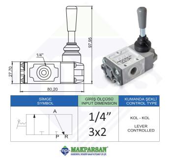 PNÖMATİK KOL-KOL VALF 1/4" 3x2 FMS MARKA