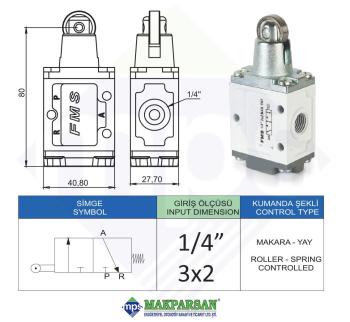 PNÖMATİK MAKARA YAY VALF 1/4" 3x2 FMS MARKA
