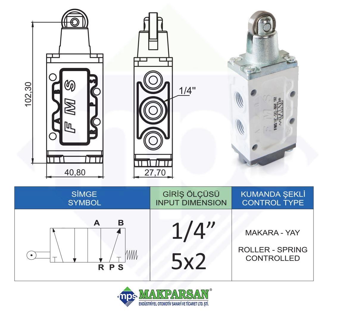 PNÖMATİK MAKARA YAY VALF 1/4" 5x2 FMS MARKA