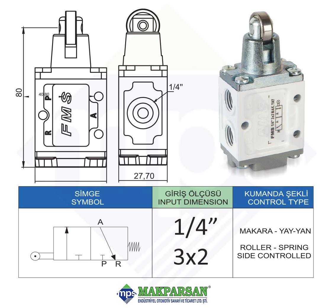 PNÖMATİK MAKARA YAY VALF YAN 1/4" 3x2 FMS MARKA
