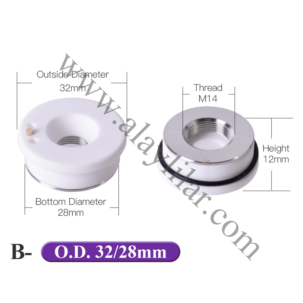 Dia 32 Ceramic, OEM üretim seramik yalıtkan parça olup lazer kesim kafalarında ısı, elektrik ve gaz izolasyonu sağlayarak stabil çalışma performansı sunar.