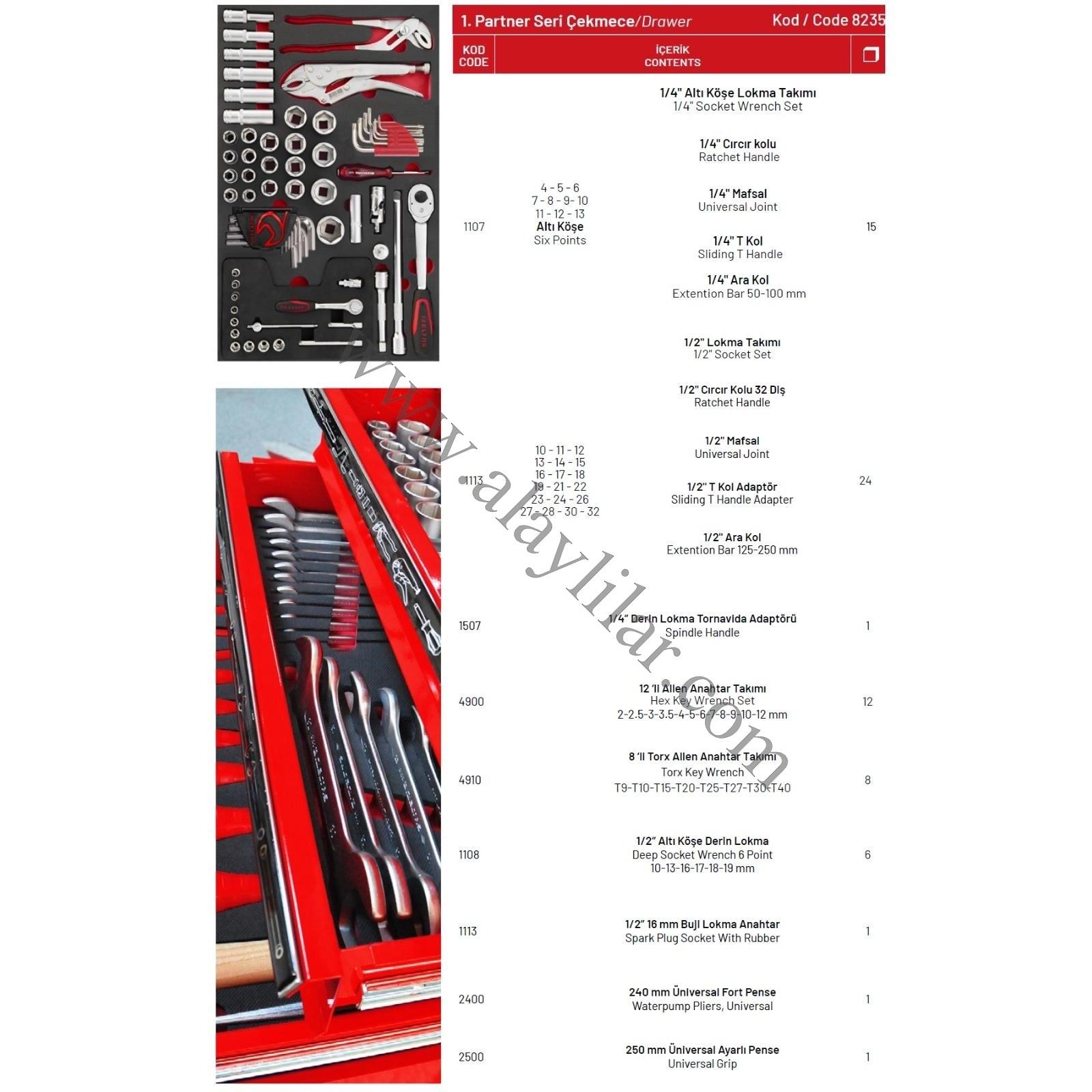 Partner Mobil Takım Dolabı (5 Çekmeceli) Dolu/Full 118 Parça