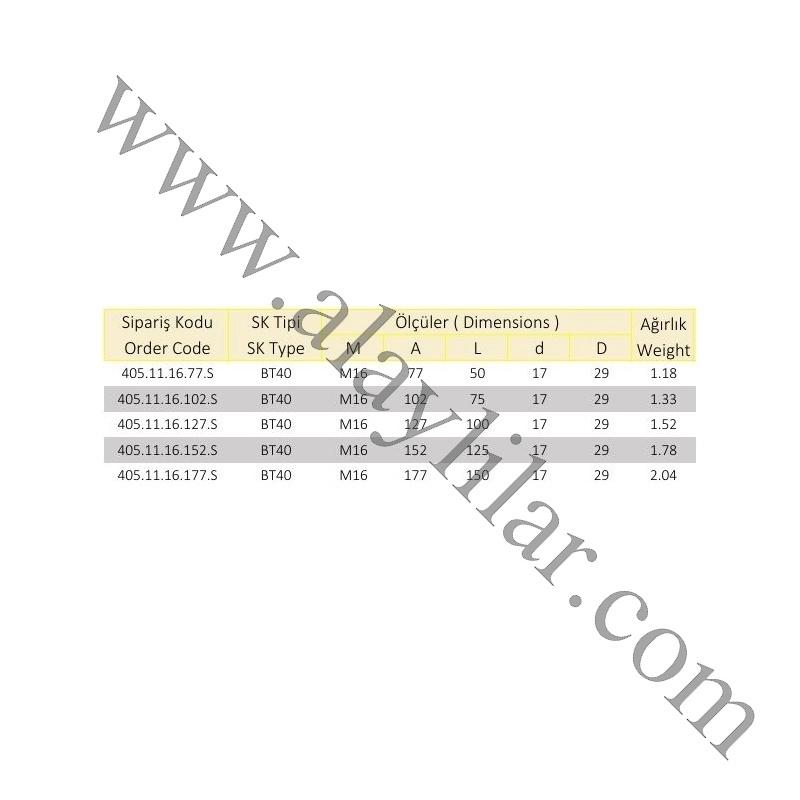 16 Metrik Vidalı Takım Tutucu İnce Cidarlı BT40